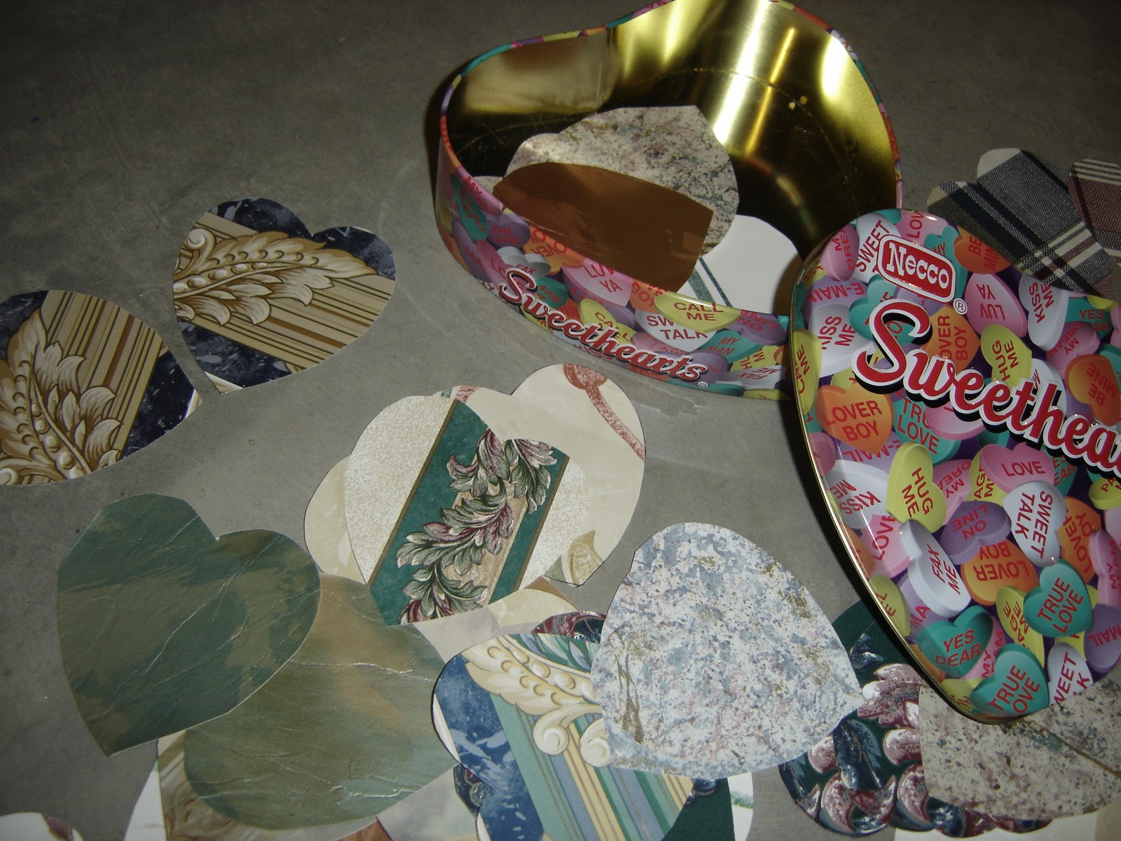 Add a lipstick kiss in the middle of some hearts (or maybe just one!) and a Valentine’s sticker in the center of the remaining hearts. Randomly cut the hearts apart using a different cut on each one.